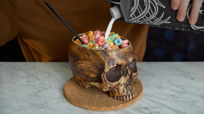 Foster launched an enormously successful Kickstarter to introduce more people to his lifelike skull-shaped ceramic bowls. Nothing madcap or whimsical here; these bowls look like one has piled up Froot Loops inside an actual human cranium. The level of detail in the work leads one to the inevitable contemplation of mortality; as the artist told me as we spoke, the skull is what is left when “life’s final mask is removed.”