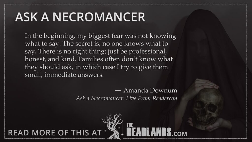 In July I made a pilgrimage to the lands of the living, this time emerging for Readercon in Boston. Many excellent living persons gathered to ask questions about death and the dead. Here are a few of those questions answered in greater detail.